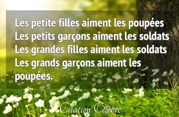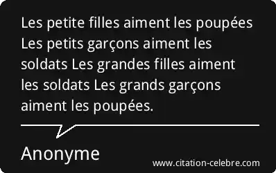 Les petite filles aiment les poupées Les petits garçons aiment les soldats Les grandes filles aiment les soldats Les grands garçons aiment les poupées.