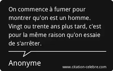 On commence à fumer pour montrer qu'on est un homme. Vingt ou trente ans plus tard, c'est pour la même raison qu'on essaie de s'arrêter.