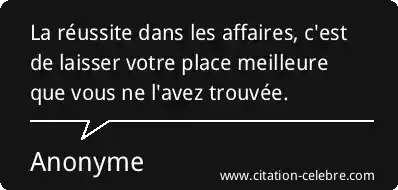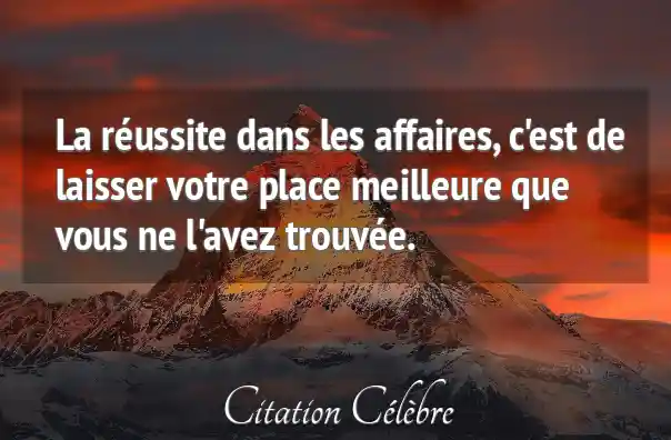 La réussite dans les affaires, c'est de laisser votre place meilleure que vous ne l'avez trouvée.
