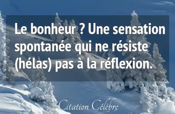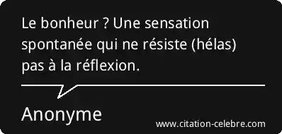 Le bonheur ? Une sensation spontanée qui ne résiste (hélas) pas à la réflexion.