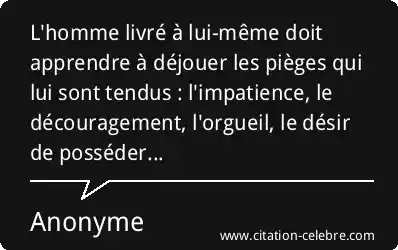 L'homme livré à lui-même doit apprendre à déjouer les pièges qui lui sont tendus : l'impatience, le découragement, l'orgueil, le désir de posséder...