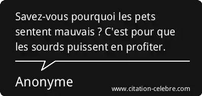 Savez-vous pourquoi les pets sentent mauvais ? C'est pour que les sourds puissent en profiter.