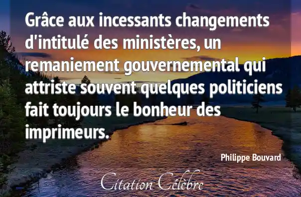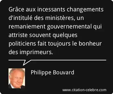 Grâce aux incessants changements d'intitulé des ministères, un remaniement gouvernemental qui attriste souvent quelques politiciens fait toujours le bonheur des imprimeurs.