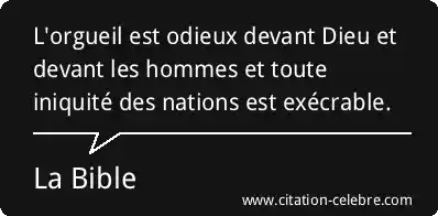 L'orgueil est odieux devant Dieu et devant les hommes et toute iniquité des nations est exécrable.