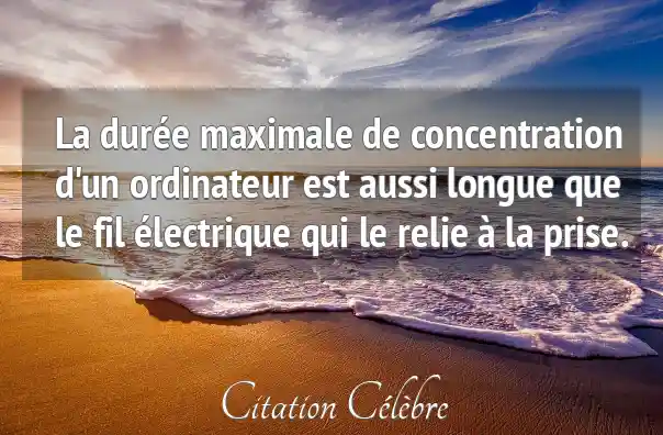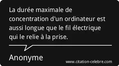 La durée maximale de concentration d'un ordinateur est aussi longue que le fil électrique qui le relie à la prise.