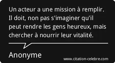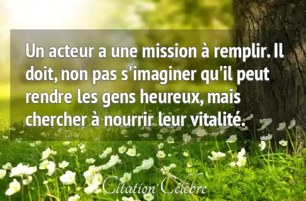 Un acteur a une mission à remplir. Il doit, non pas s'imaginer qu'il peut rendre les gens heureux, mais chercher à nourrir leur vitalité.