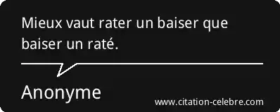 Mieux vaut rater un baiser que baiser un raté.