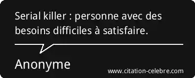 Serial killer : personne avec des besoins difficiles à satisfaire.