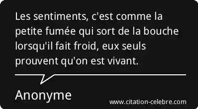 Les sentiments, c'est comme la petite fumée qui sort de la bouche lorsqu'il fait froid, eux seuls prouvent qu'on est vivant.