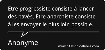 Etre progressiste consiste à lancer des pavés. Etre anarchiste consiste à les envoyer le plus loin possible.