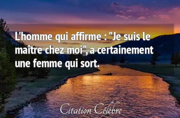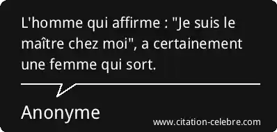 L'homme qui affirme : "Je suis le maître chez moi", a certainement une femme qui sort.
