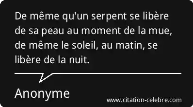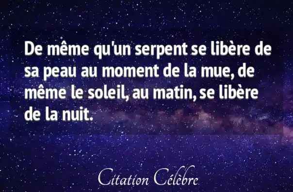 De même qu'un serpent se libère de sa peau au moment de la mue, de même le soleil, au matin, se libère de la nuit.