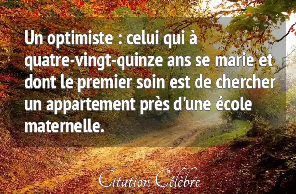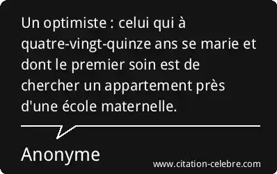 Un optimiste : celui qui à quatre-vingt-quinze ans se marie et dont le premier soin est de chercher un appartement près d'une école maternelle.