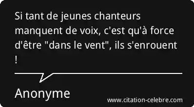Si tant de jeunes chanteurs manquent de voix, c'est qu'à force d'être "dans le vent", ils s'enrouent !