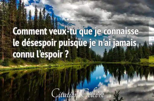Comment veux-tu que je connaisse le désespoir puisque je n'ai jamais connu l'espoir ?
