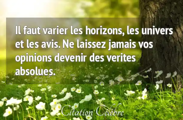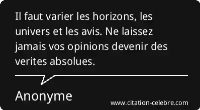 Il faut varier les horizons, les univers et les avis. Ne laissez jamais vos opinions devenir des verites absolues.