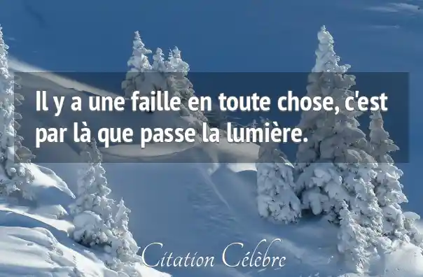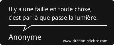 Il y a une faille en toute chose, c'est par là que passe la lumière.