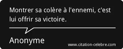 Montrer sa colère à l'ennemi, c'est lui offrir sa victoire.