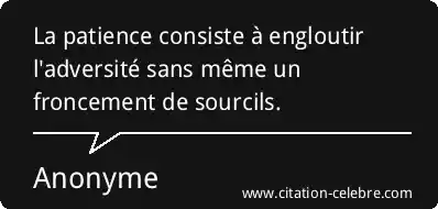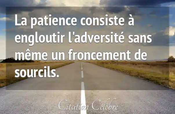La patience consiste à engloutir l'adversité sans même un froncement de sourcils.
