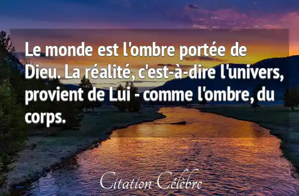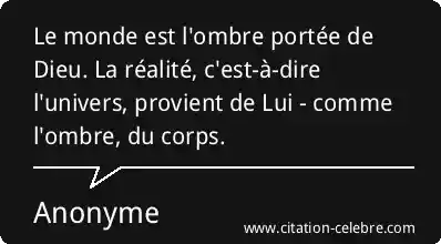 Le monde est l'ombre portée de Dieu. La réalité, c'est-à-dire l'univers, provient de Lui - comme l'ombre, du corps.