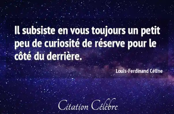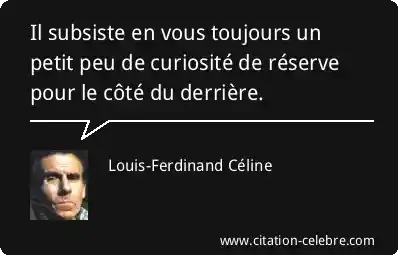 Il subsiste en vous toujours un petit peu de curiosité de réserve pour le côté du derrière.