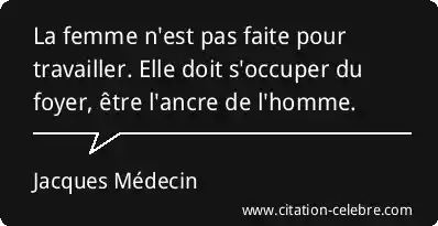 La femme n'est pas faite pour travailler. Elle doit s'occuper du foyer, être l'ancre de l'homme.