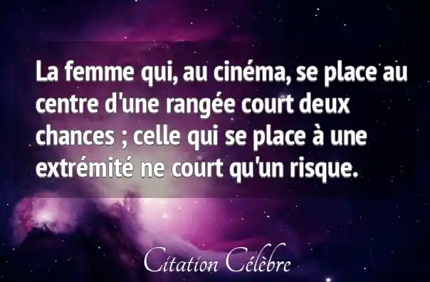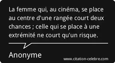 La femme qui, au cinéma, se place au centre d'une rangée court deux chances ; celle qui se place à une extrémité ne court qu'un risque.