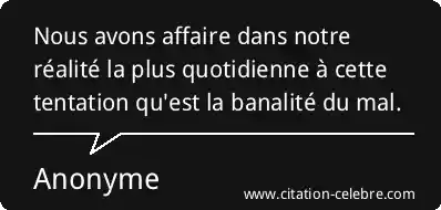Nous avons affaire dans notre réalité la plus quotidienne à cette tentation qu'est la banalité du mal.
