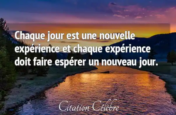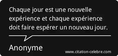 Chaque jour est une nouvelle expérience et chaque expérience doit faire espérer un nouveau jour.