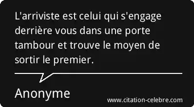 L'arriviste est celui qui s'engage derrière vous dans une porte tambour et trouve le moyen de sortir le premier.