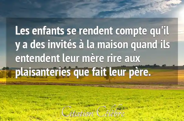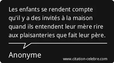 Les enfants se rendent compte qu'il y a des invités à la maison quand ils entendent leur mère rire aux plaisanteries que fait leur père.