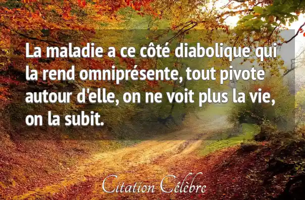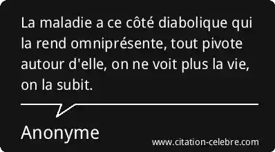 La maladie a ce côté diabolique qui la rend omniprésente, tout pivote autour d'elle, on ne voit plus la vie, on la subit.
