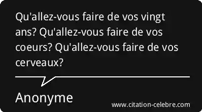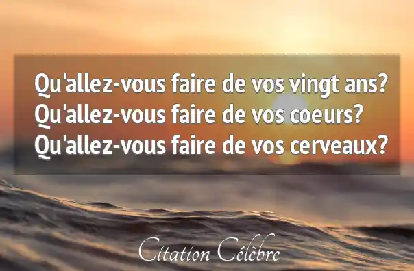 Qu'allez-vous faire de vos vingt ans? Qu'allez-vous faire de vos coeurs? Qu'allez-vous faire de vos cerveaux?
