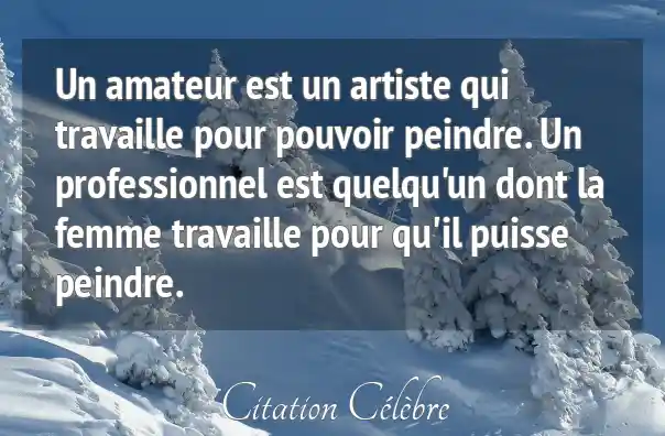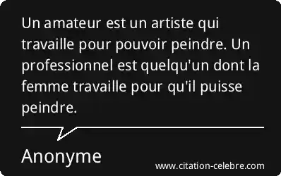 Un amateur est un artiste qui travaille pour pouvoir peindre. Un professionnel est quelqu'un dont la femme travaille pour qu'il puisse peindre.