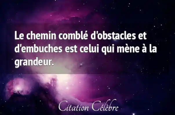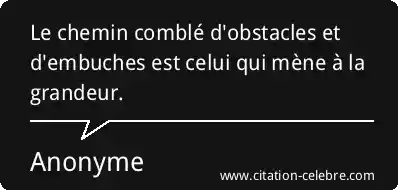Le chemin comblé d'obstacles et d'embuches est celui qui mène à la grandeur.