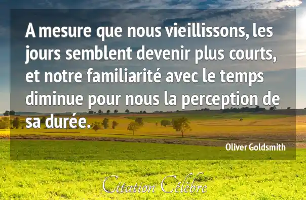 A mesure que nous vieillissons, les jours semblent devenir plus courts, et notre familiarité avec le temps diminue pour nous la perception de sa durée.