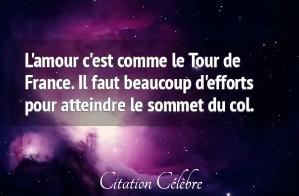 L'amour c'est comme le Tour de France. Il faut beaucoup d'efforts pour atteindre le sommet du col.