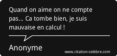 Quand on aime on ne compte pas... Ca tombe bien, je suis mauvaise en calcul !