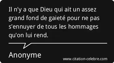 Il n'y a que Dieu qui ait un assez grand fond de gaieté pour ne pas s'ennuyer de tous les hommages qu'on lui rend.