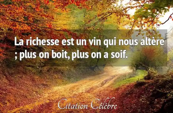 La richesse est un vin qui nous altère ; plus on boit, plus on a soif.