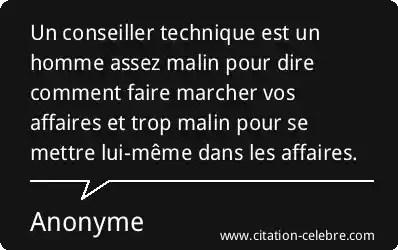 Un conseiller technique est un homme assez malin pour dire comment faire marcher vos affaires et trop malin pour se mettre lui-même dans les affaires.