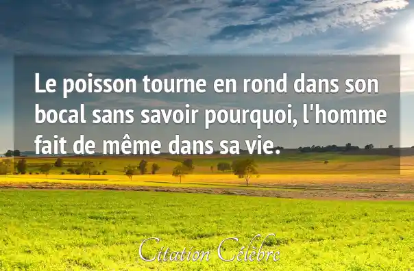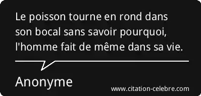Le poisson tourne en rond dans son bocal sans savoir pourquoi, l'homme fait de même dans sa vie.