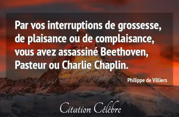 Par vos interruptions de grossesse, de plaisance ou de complaisance, vous avez assassiné Beethoven, Pasteur ou Charlie Chaplin.