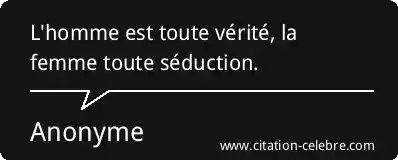 Citation Anonyme femme : L'homme est toute vérité, la femme toute séduction....