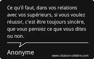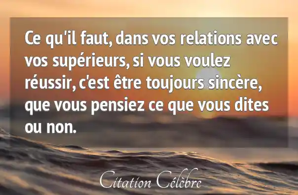 Ce qu'il faut, dans vos relations avec vos supérieurs, si vous voulez réussir, c'est être toujours sincère, que vous pensiez ce que vous dites ou non.