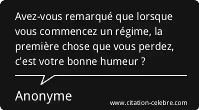Avez-vous remarqué que lorsque vous commencez un régime, la première chose que vous perdez, c'est votre bonne humeur ?