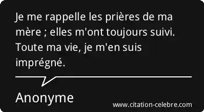 Je me rappelle les prières de ma mère ; elles m'ont toujours suivi. Toute ma vie, je m'en suis imprégné.