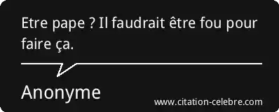 Etre pape ? Il faudrait être fou pour faire ça.