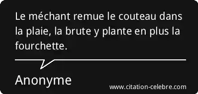 Le méchant remue le couteau dans la plaie, la brute y plante en plus la fourchette.