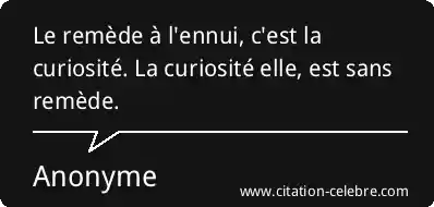 Le remède à l'ennui, c'est la curiosité. La curiosité elle, est sans remède.